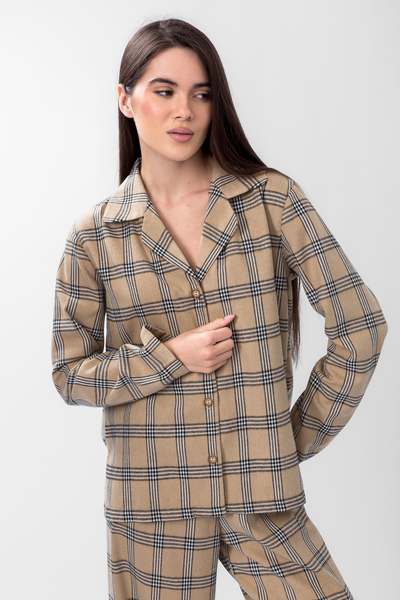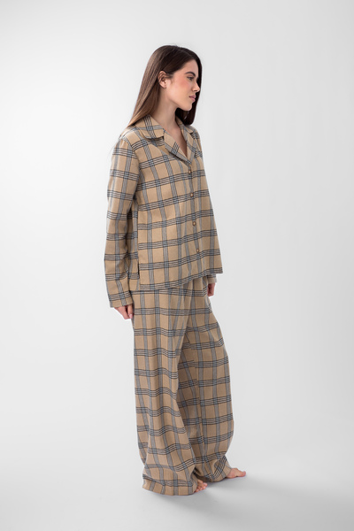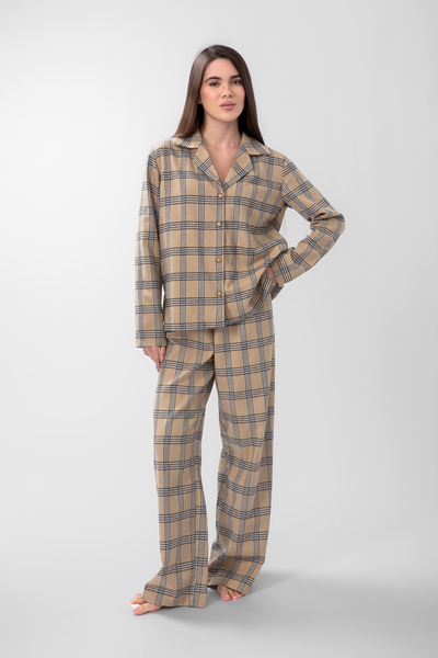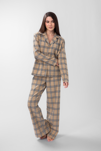 • Бавовняна піжама  PGM-2549 Бежевий + чорна клітинка  XS/S XS/S Бежевий Бежевий + чорна клітинка
