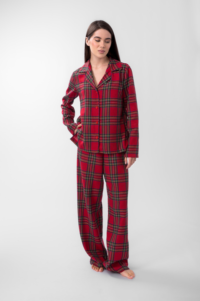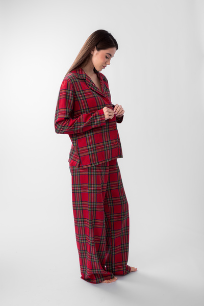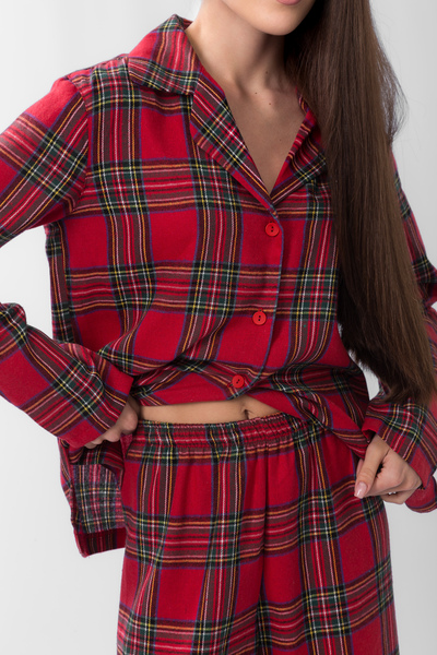 • Ця піжама - ідеальний вибір для тих, хто шукає не тільки комфорт, а й стильний домашній образ. Класична клітинка в поєднанні з соковитими червоними та зеленими відтінками створює затишну та святкову атмосферу, даруючи відчуття тепла та радості. М'яка, приємна на дотик тканина забезпечить вам максимальний комфорт під час відпочинку, а вільний крій не обмежуватиме рухів.