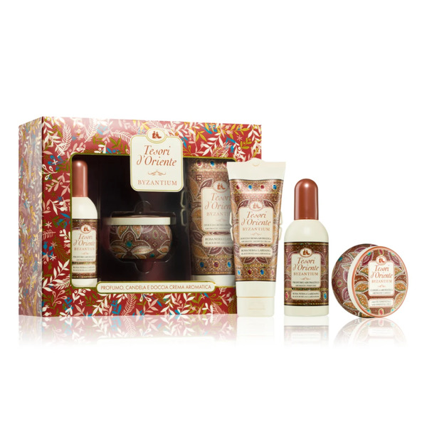 Подарунковий набір POCHETTE Tesori d'Oriente Візантія – це елегантний подарунковий комплект від італійського бренду Tesori d'Oriente, натхненний багатством Візантійської імперії. Набір упаковано в стильну маленьку косметичку (POCHETTE), що робить його ідеальним варіантом для подарунка або щоденного використання.